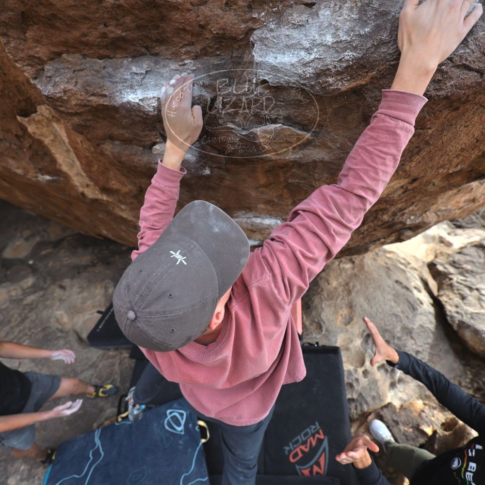 Blue Lizard Climbing and Yoga Hueco Tanks guiding on March 19, 2022, with Brock, Drew, Jacob, Ginger, Nic, and Wendy & Trace |