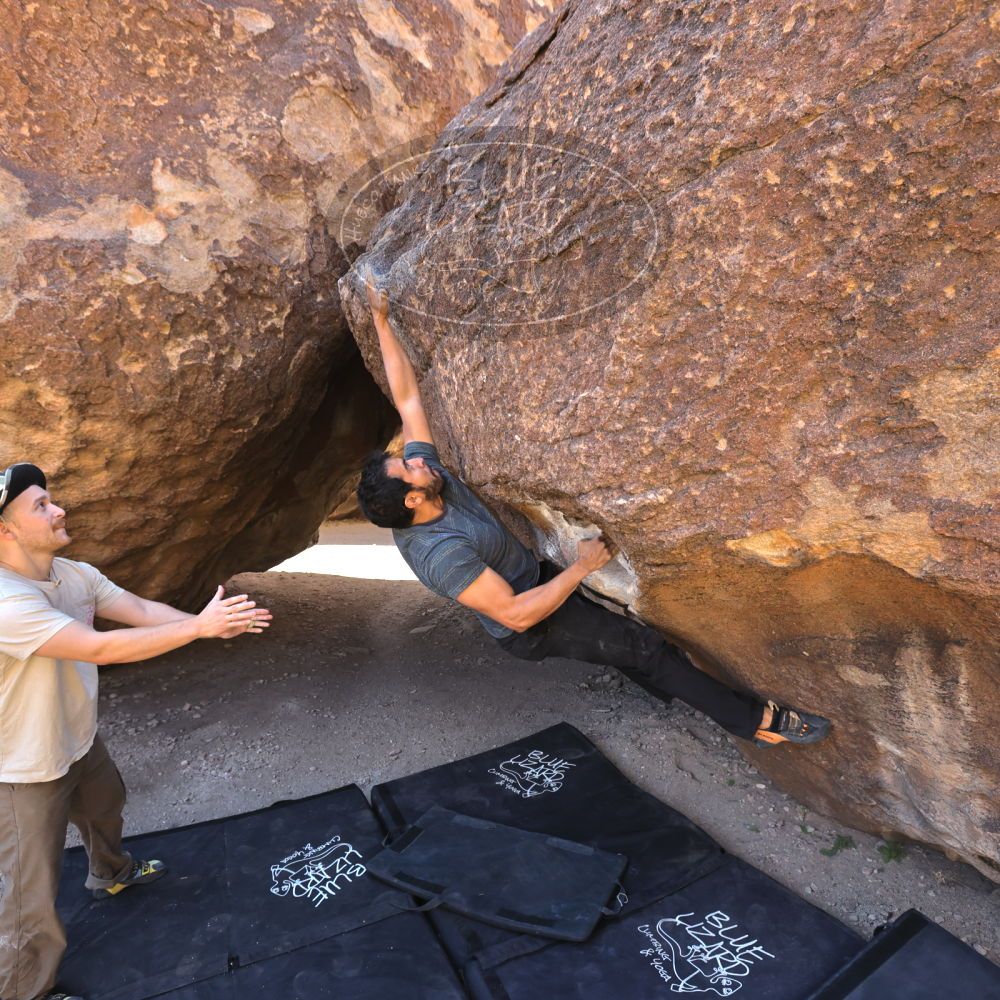 Blue Lizard Climbing and Yoga Hueco Tanks guiding on April 8, 2022, with Andrew, Cadzie, Matt, Matteo, Morgan, and Oscar |
