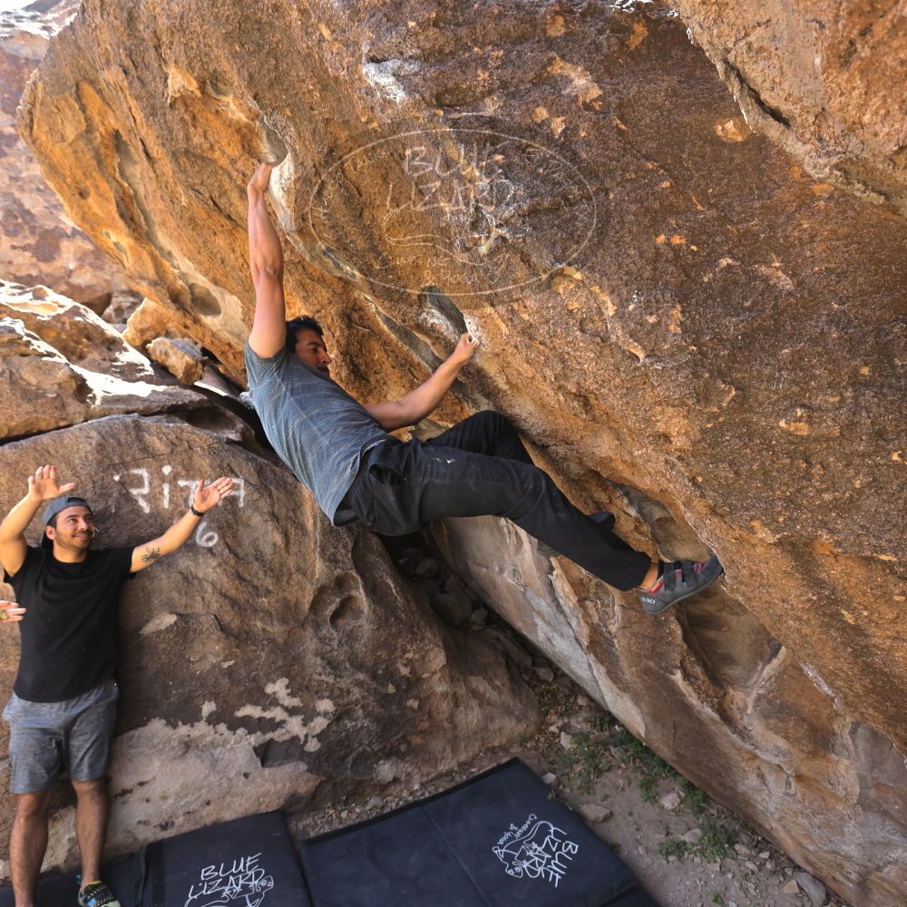 Blue Lizard Climbing and Yoga Hueco Tanks guiding on April 8, 2022, with Andrew, Cadzie, Matt, Matteo, Morgan, and Oscar |