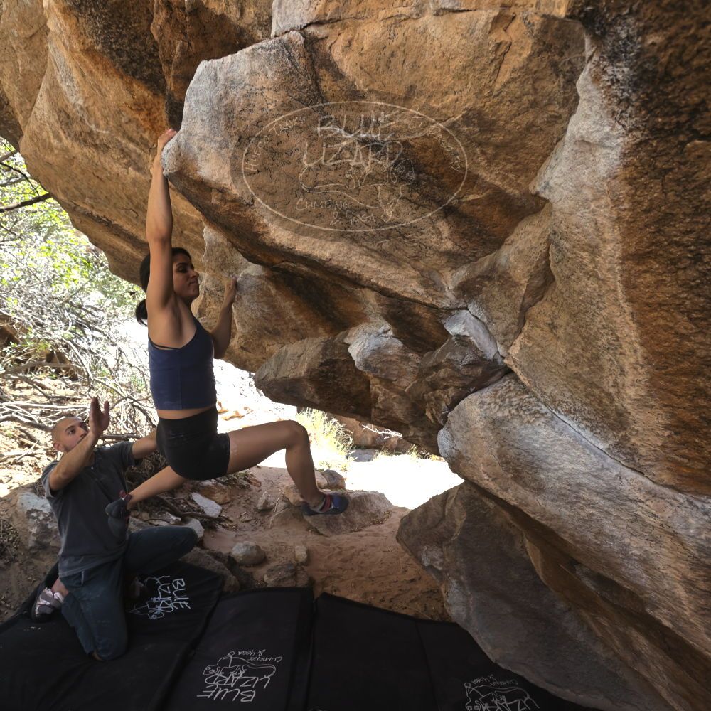 Blue Lizard Climbing and Yoga Hueco Tanks guiding on April 8, 2022, with Andrew, Cadzie, Matt, Matteo, Morgan, and Oscar |