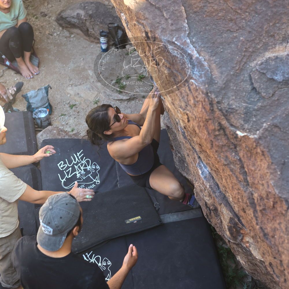 Blue Lizard Climbing and Yoga Hueco Tanks guiding on April 8, 2022, with Andrew, Cadzie, Matt, Matteo, Morgan, and Oscar |