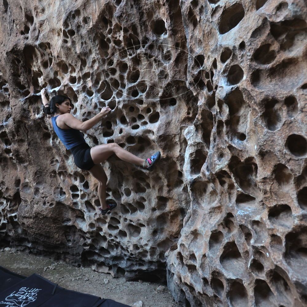 Blue Lizard Climbing and Yoga Hueco Tanks guiding on April 8, 2022, with Andrew, Cadzie, Matt, Matteo, Morgan, and Oscar |