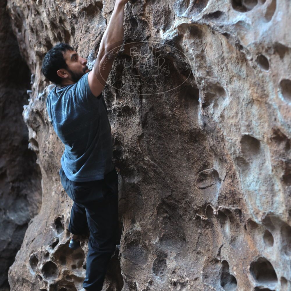 Blue Lizard Climbing and Yoga Hueco Tanks guiding on April 8, 2022, with Andrew, Cadzie, Matt, Matteo, Morgan, and Oscar |