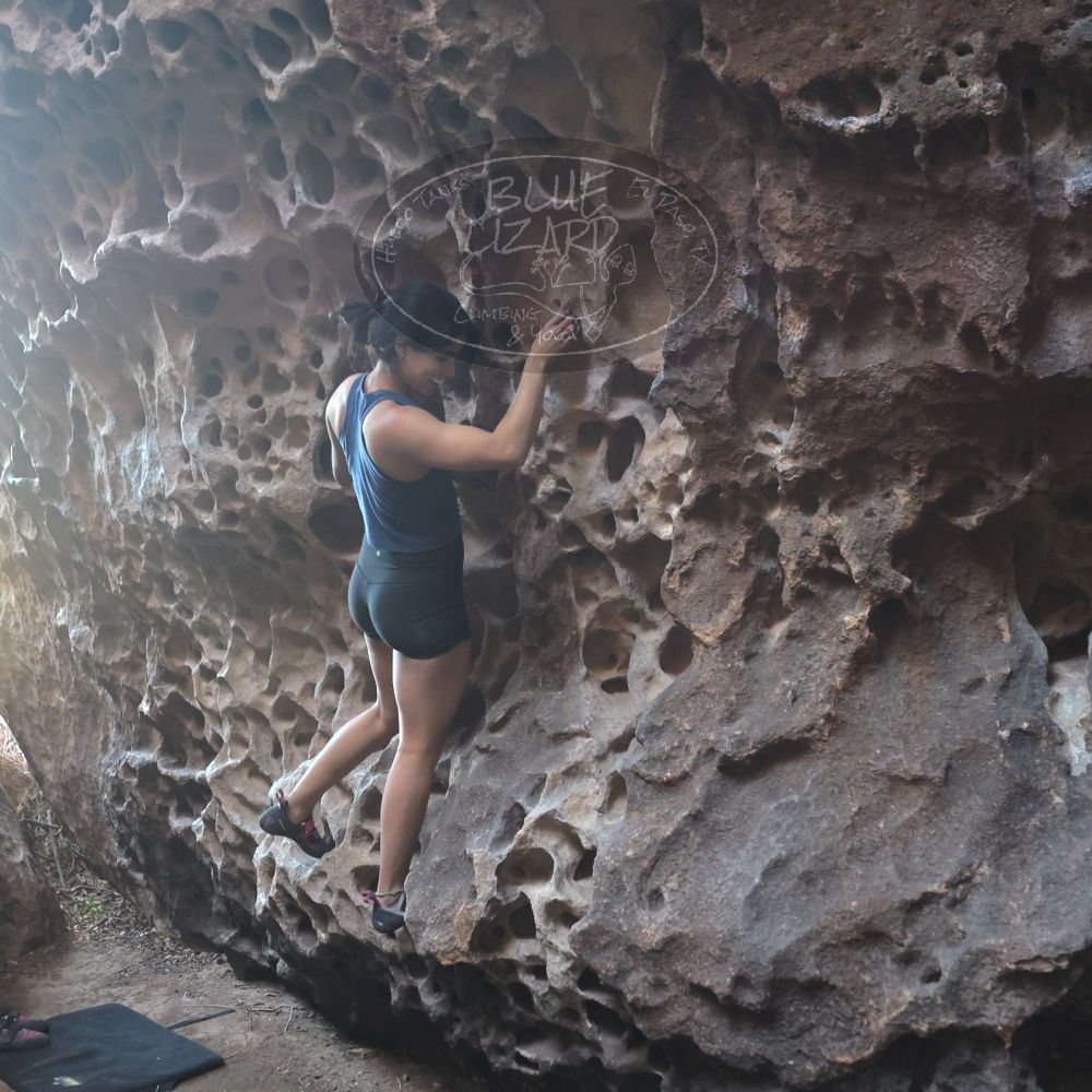Blue Lizard Climbing and Yoga Hueco Tanks guiding on April 8, 2022, with Andrew, Cadzie, Matt, Matteo, Morgan, and Oscar |
