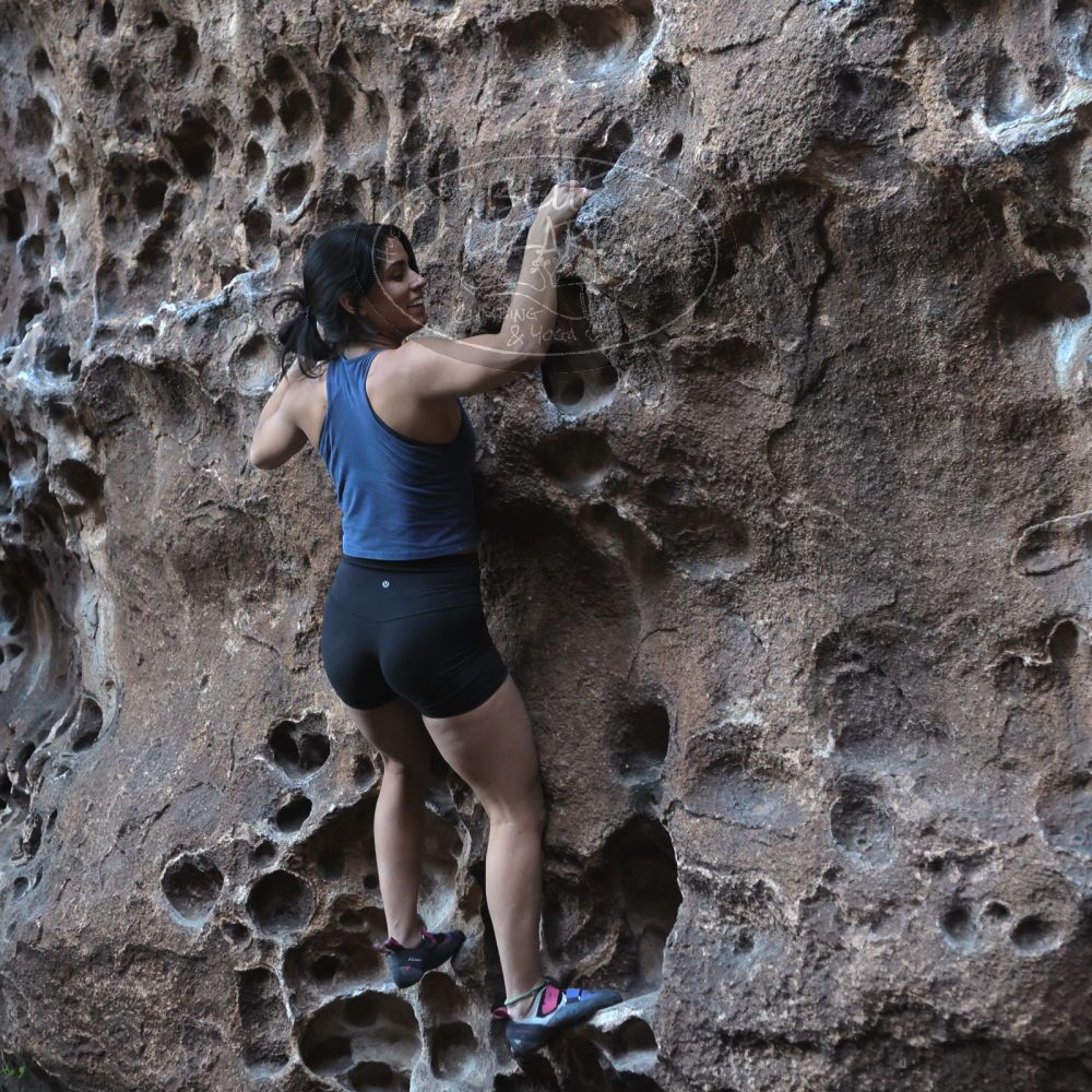 Blue Lizard Climbing and Yoga Hueco Tanks guiding on April 8, 2022, with Andrew, Cadzie, Matt, Matteo, Morgan, and Oscar |