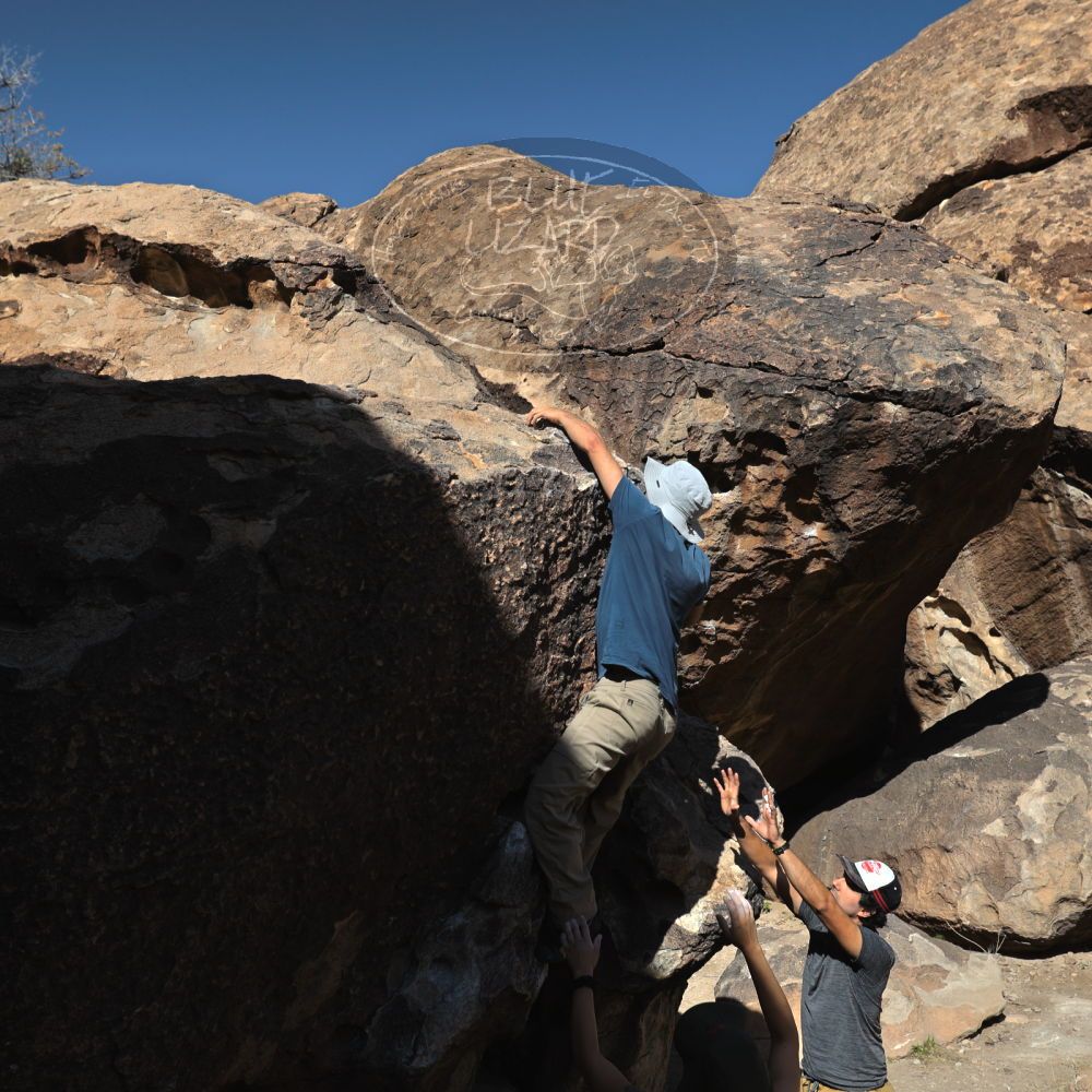 Blue Lizard Climbing and Yoga Hueco Tanks guiding on April 9, 2022, with Eric, Issac, Jake, Javi, Raen & JP, and Thayne |