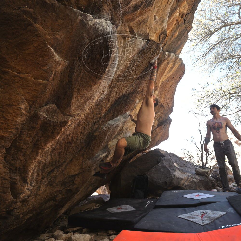 Blue Lizard Climbing and Yoga Hueco Tanks guiding on April 9, 2022, with Eric, Issac, Jake, Javi, Raen & JP, and Thayne |