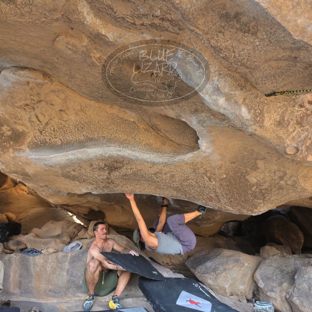 Blue Lizard Climbing and Yoga Hueco Tanks guiding on April 9, 2022, with Eric, Issac, Jake, Javi, Raen & JP, and Thayne |