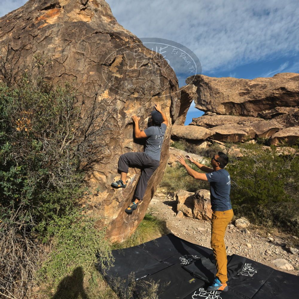 Blue Lizard Climbing and Yoga Hueco Tanks guiding on October 22, 2022, with Anna & Eric, David, Kevin, Jasmine, Justin, and Vic |