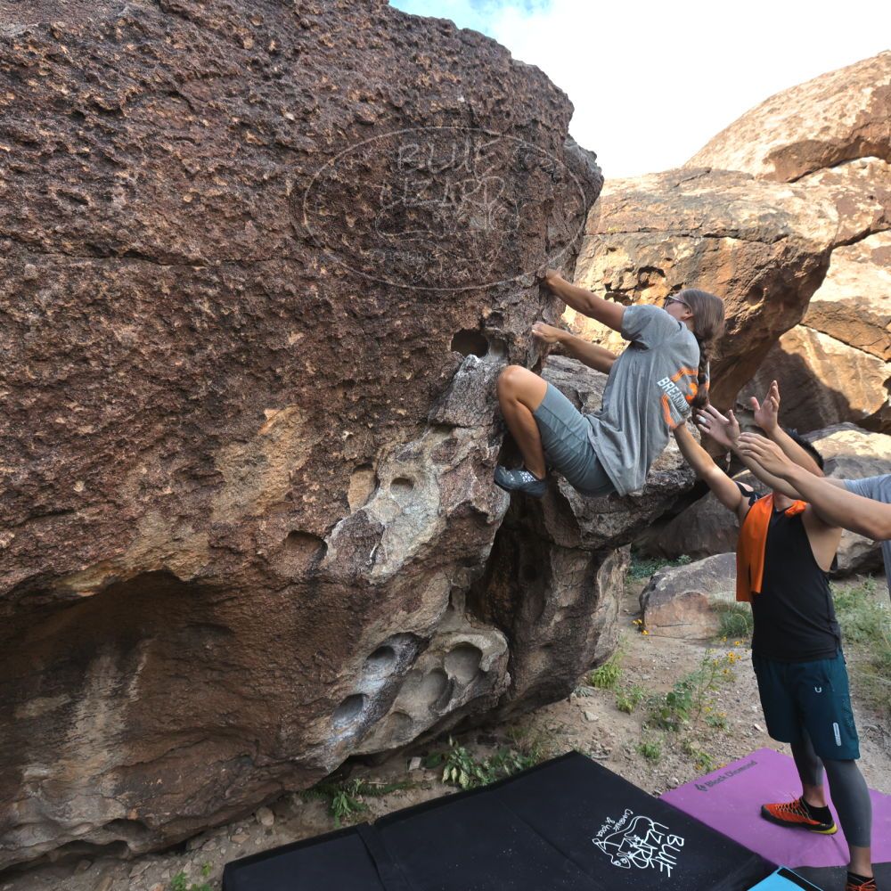 Blue Lizard Climbing and Yoga Hueco Tanks guiding on October 22, 2022, with Anna & Eric, David, Kevin, Jasmine, Justin, and Vic |