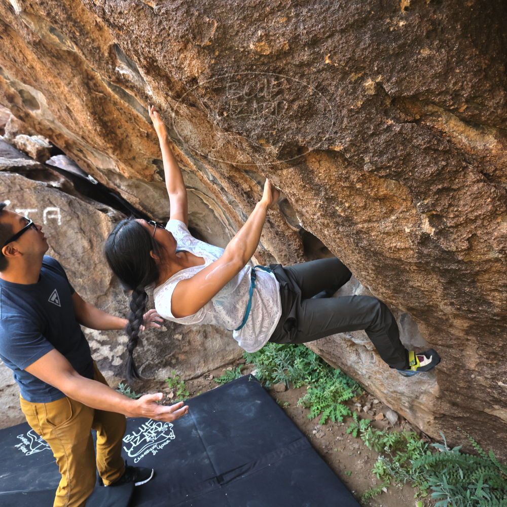 Blue Lizard Climbing and Yoga Hueco Tanks guiding on October 22, 2022, with Anna & Eric, David, Kevin, Jasmine, Justin, and Vic |