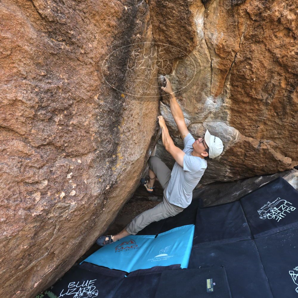 Blue Lizard Climbing and Yoga Hueco Tanks guiding on October 22, 2022, with Anna & Eric, David, Kevin, Jasmine, Justin, and Vic |