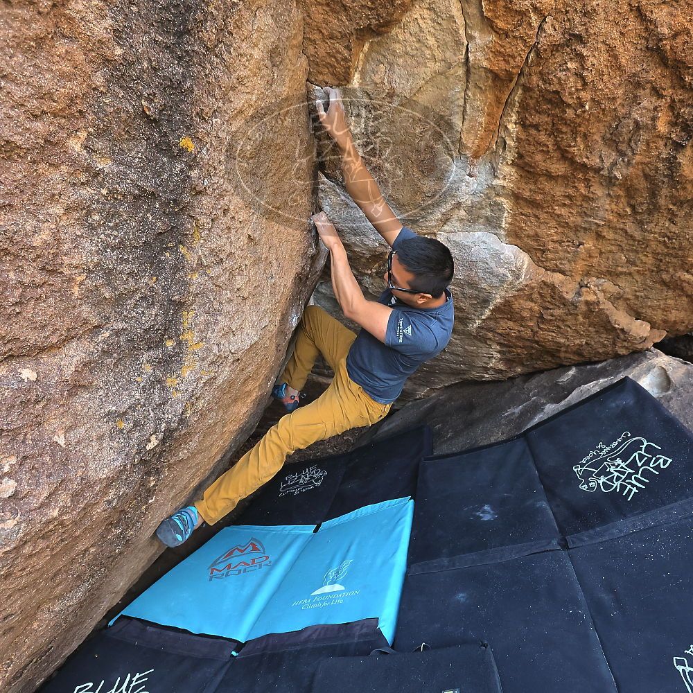 Blue Lizard Climbing and Yoga Hueco Tanks guiding on October 22, 2022, with Anna & Eric, David, Kevin, Jasmine, Justin, and Vic |
