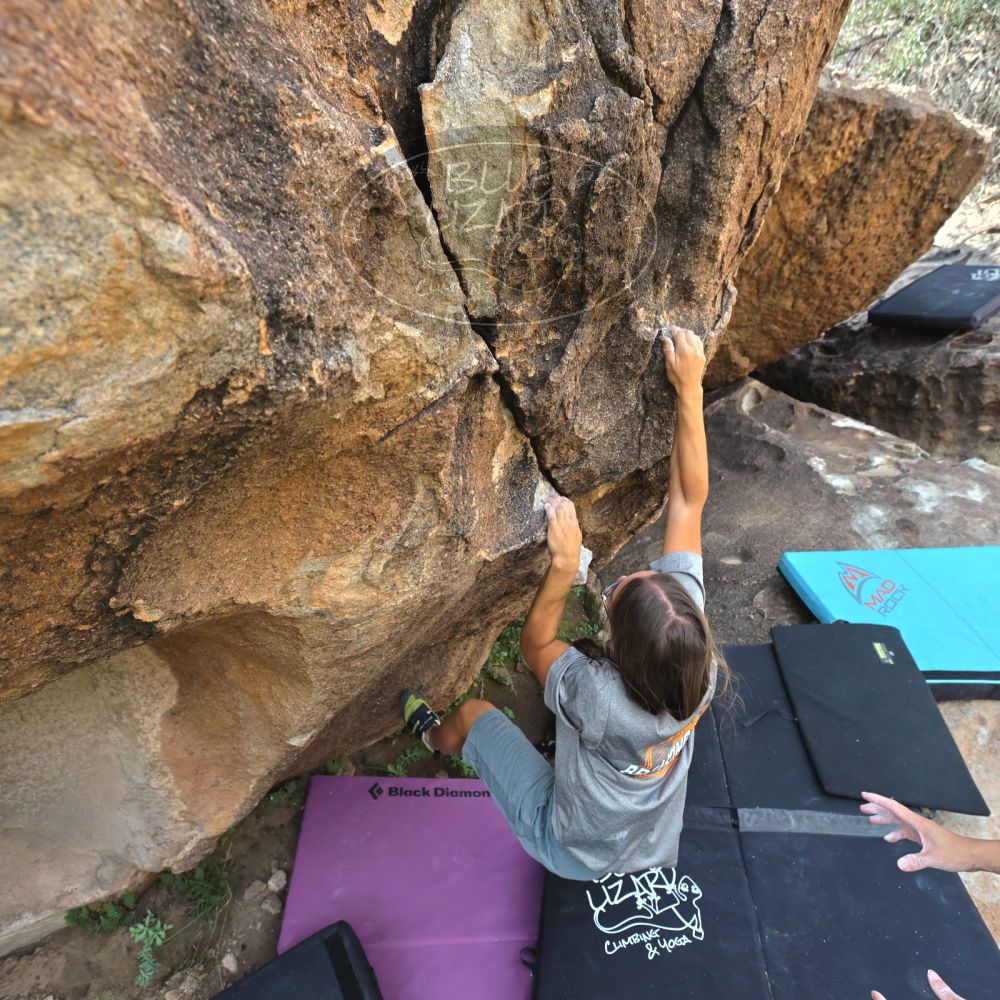 Blue Lizard Climbing and Yoga Hueco Tanks guiding on October 22, 2022, with Anna & Eric, David, Kevin, Jasmine, Justin, and Vic |