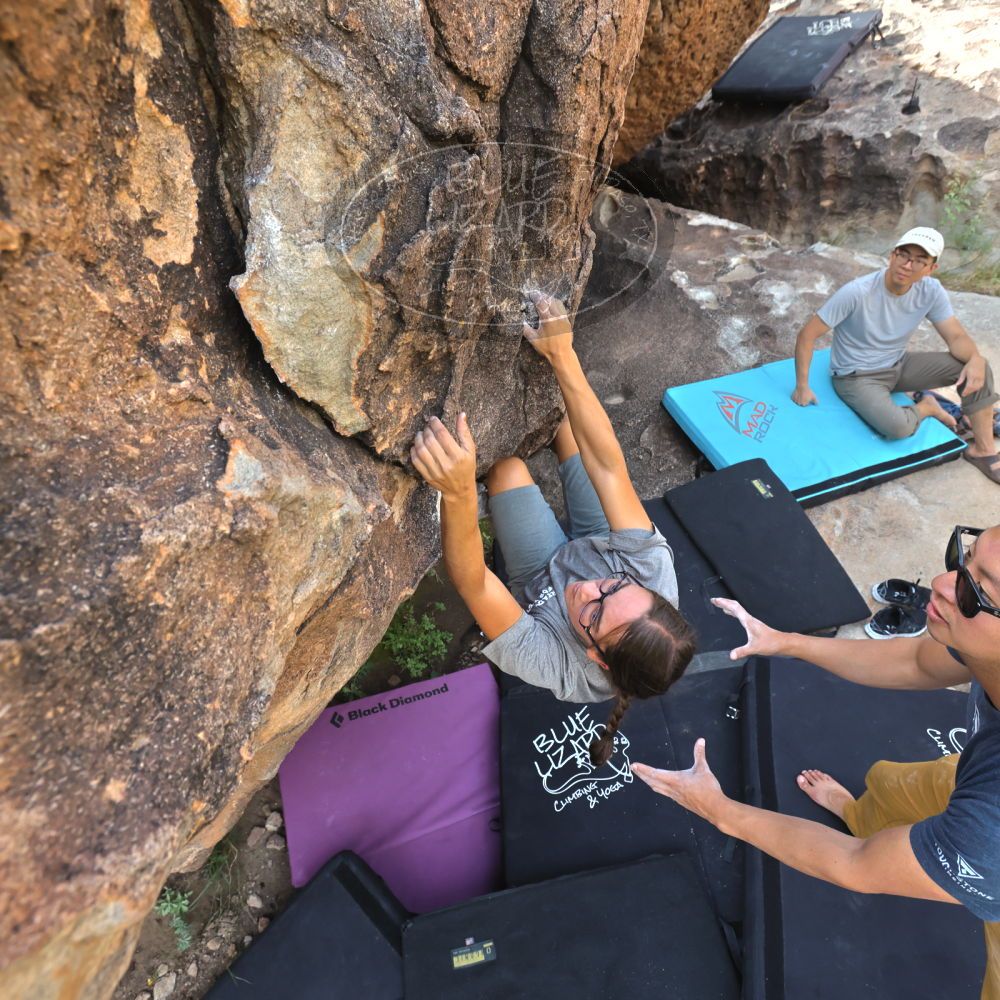 Blue Lizard Climbing and Yoga Hueco Tanks guiding on October 22, 2022, with Anna & Eric, David, Kevin, Jasmine, Justin, and Vic |