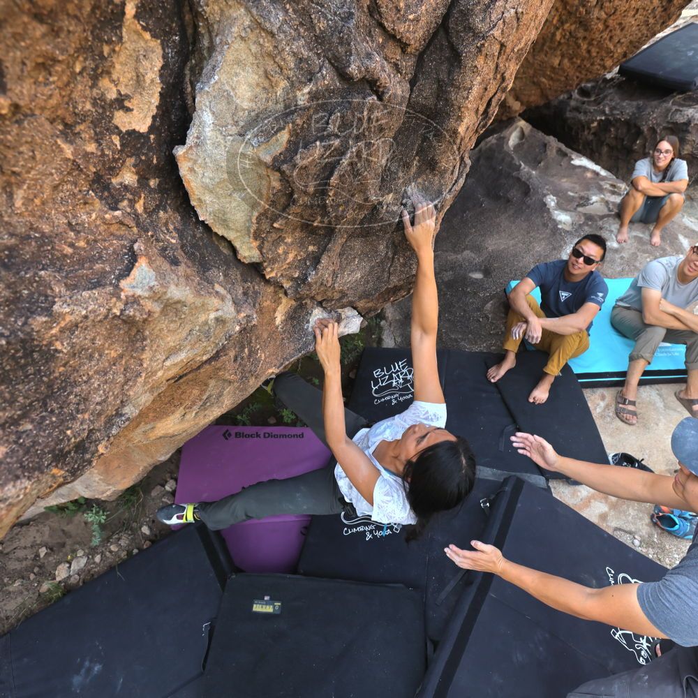 Blue Lizard Climbing and Yoga Hueco Tanks guiding on October 22, 2022, with Anna & Eric, David, Kevin, Jasmine, Justin, and Vic |