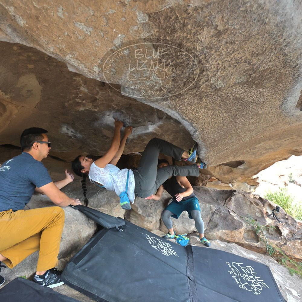 Blue Lizard Climbing and Yoga Hueco Tanks guiding on October 22, 2022, with Anna & Eric, David, Kevin, Jasmine, Justin, and Vic |