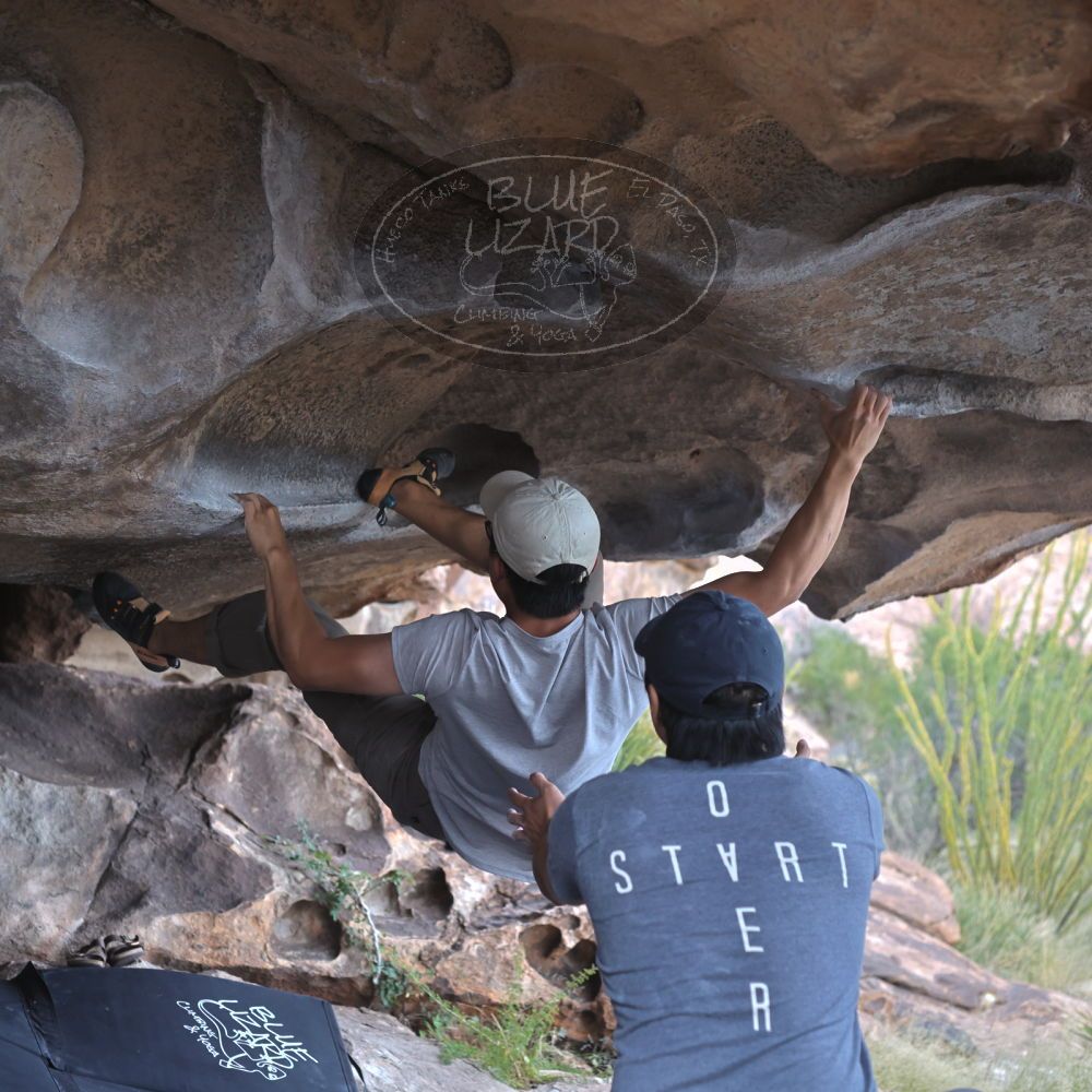 Blue Lizard Climbing and Yoga Hueco Tanks guiding on October 22, 2022, with Anna & Eric, David, Kevin, Jasmine, Justin, and Vic |