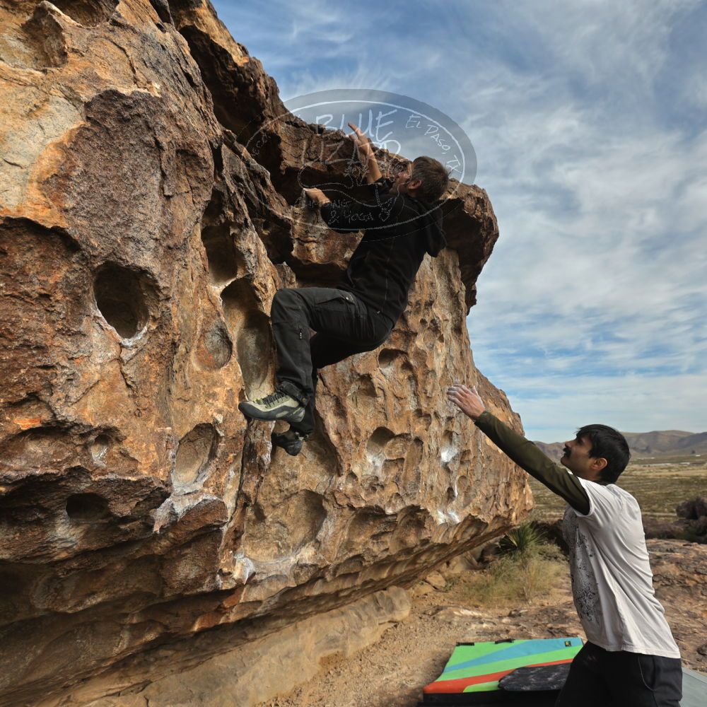 Blue Lizard Climbing and Yoga Hueco Tanks guiding on November 13, 2022, with Matt & Alex, and Nick