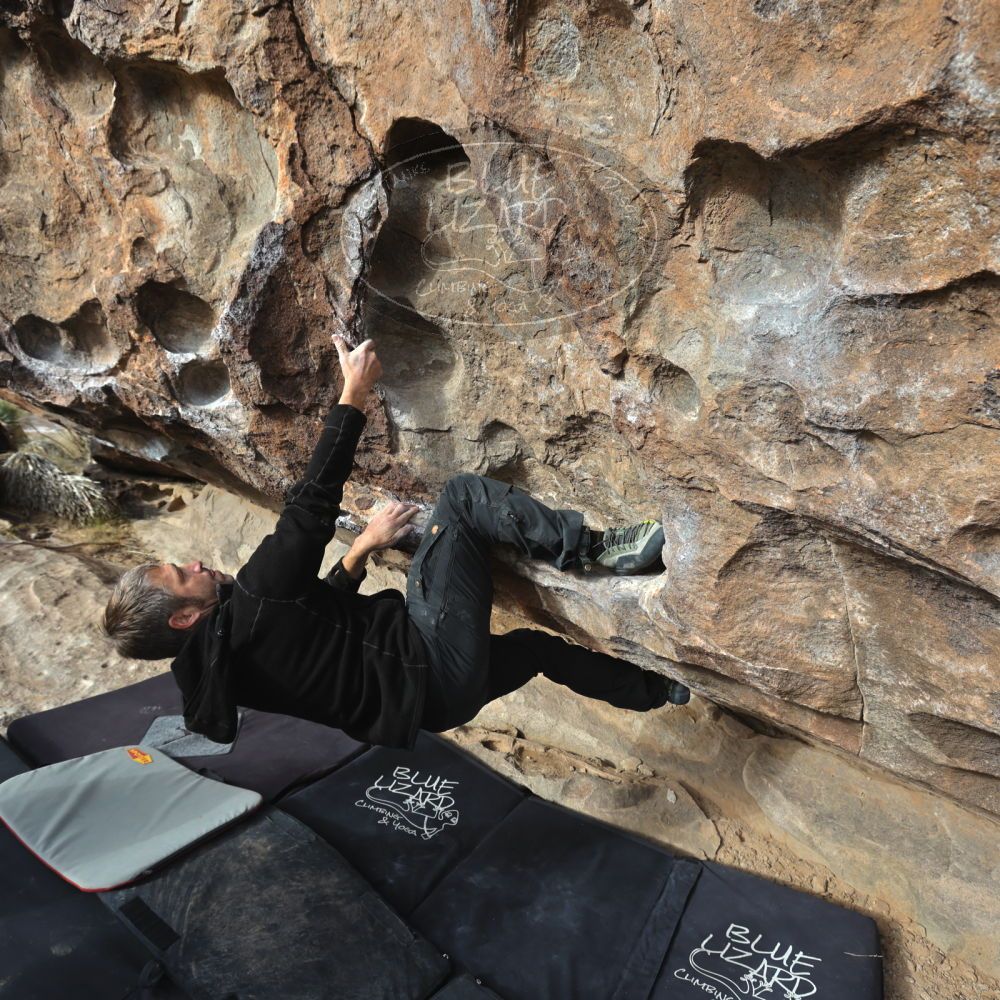 Blue Lizard Climbing and Yoga Hueco Tanks guiding on November 13, 2022, with Matt & Alex, and Nick