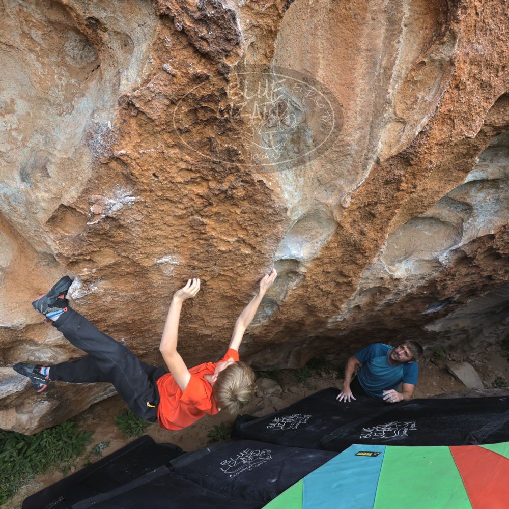 Blue Lizard Climbing and Yoga Hueco Tanks guiding on November 13, 2022, with Matt & Alex, and Nick