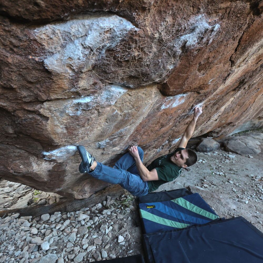 Blue Lizard Climbing and Yoga Hueco Tanks guiding on November 24, 2022, with Aaron, Cole, Jeremy, Lily, and Shane