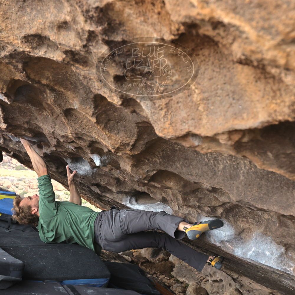 Blue Lizard Climbing and Yoga Hueco Tanks guiding on December 4, 2022, with Emily & Joey, Jamie & Kyle, Lisa & Dan, and Nicole & Chris |