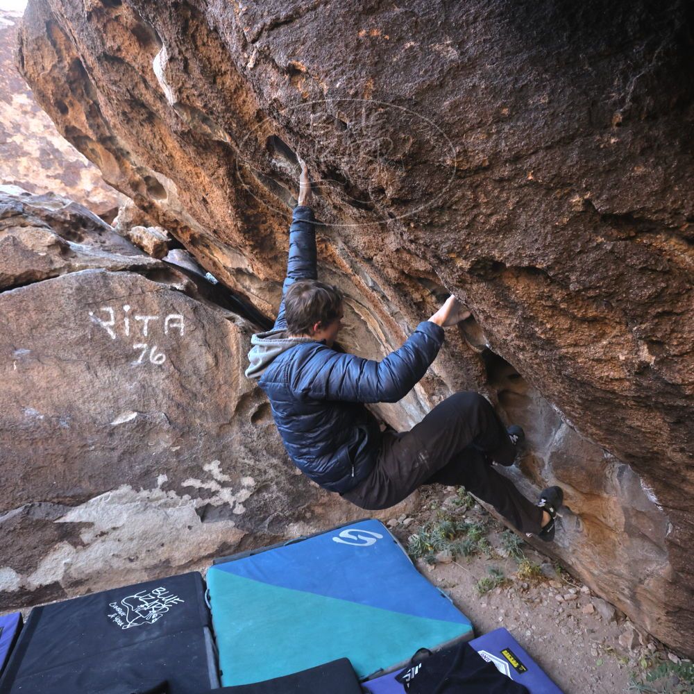 Blue Lizard Climbing and Yoga Hueco Tanks guiding on December 16, 2022, with Emma, Ethan, Isaac, Keith, and Nathan