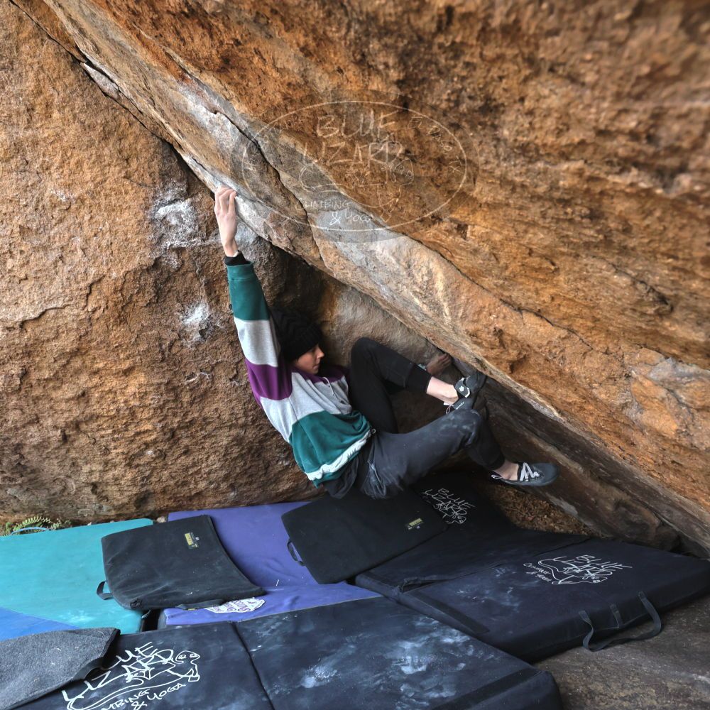 Blue Lizard Climbing and Yoga Hueco Tanks guiding on December 16, 2022, with Emma, Ethan, Isaac, Keith, and Nathan