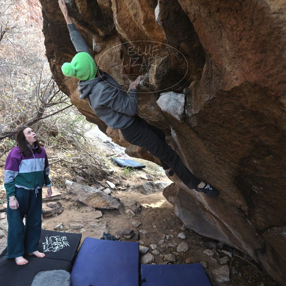 Blue Lizard Climbing and Yoga Hueco Tanks guiding on December 16, 2022, with Emma, Ethan, Isaac, Keith, and Nathan