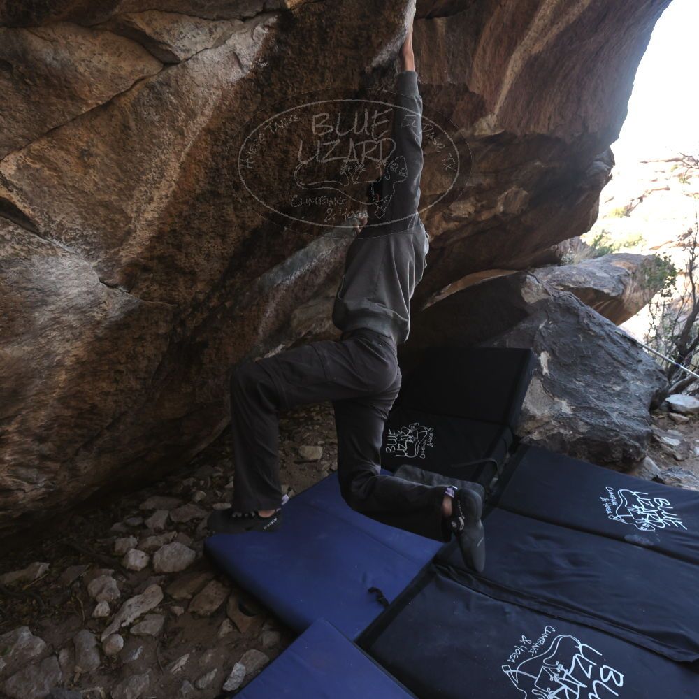 Blue Lizard Climbing and Yoga Hueco Tanks guiding on December 16, 2022, with Emma, Ethan, Isaac, Keith, and Nathan