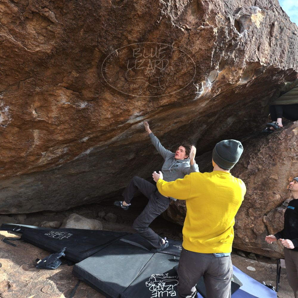 Blue Lizard Climbing and Yoga Hueco Tanks guiding on December 16, 2022, with Emma, Ethan, Isaac, Keith, and Nathan