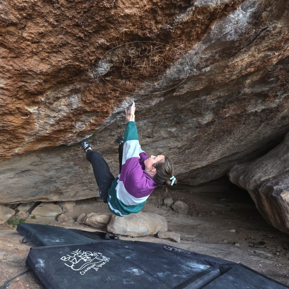 Blue Lizard Climbing and Yoga Hueco Tanks guiding on December 16, 2022, with Emma, Ethan, Isaac, Keith, and Nathan