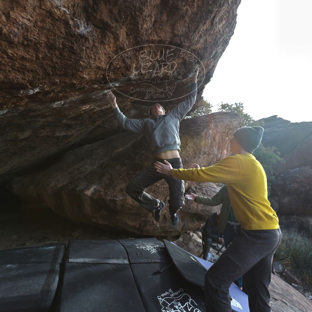 Blue Lizard Climbing and Yoga Hueco Tanks guiding on December 16, 2022, with Emma, Ethan, Isaac, Keith, and Nathan
