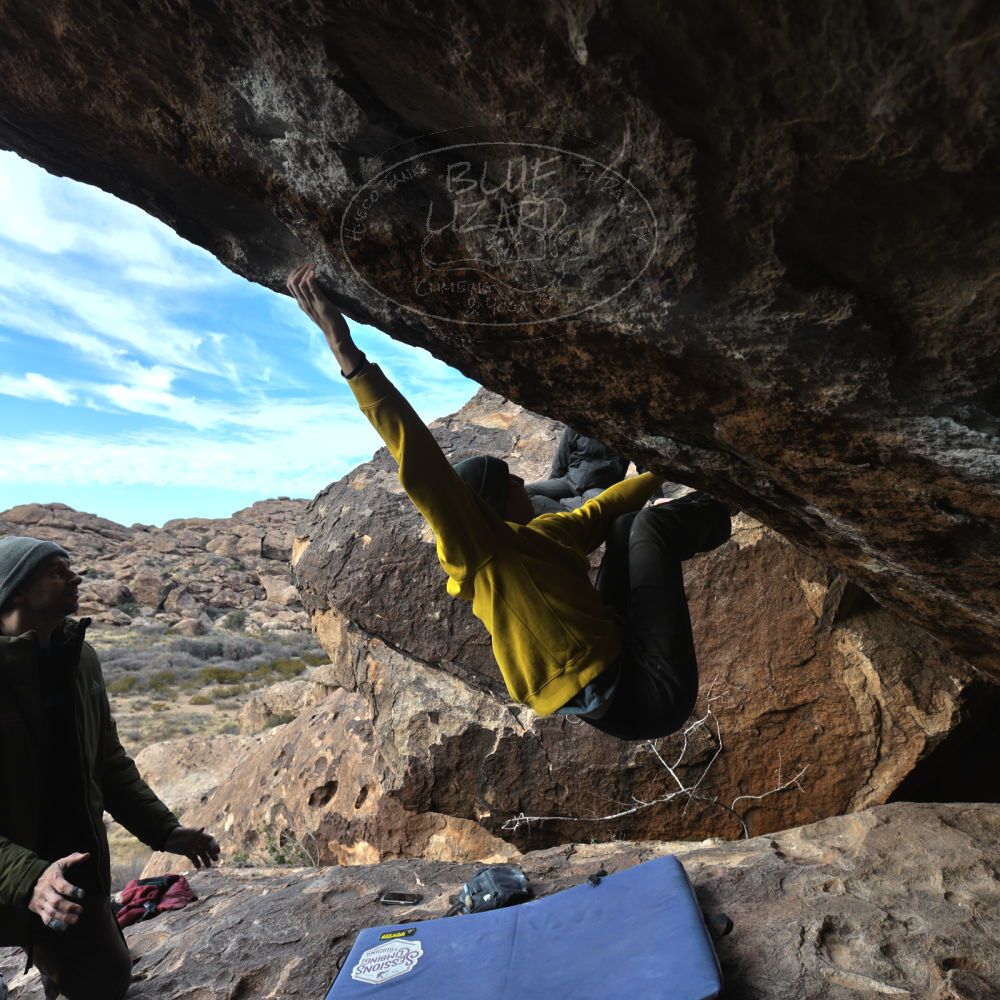 Blue Lizard Climbing and Yoga Hueco Tanks guiding on December 16, 2022, with Emma, Ethan, Isaac, Keith, and Nathan