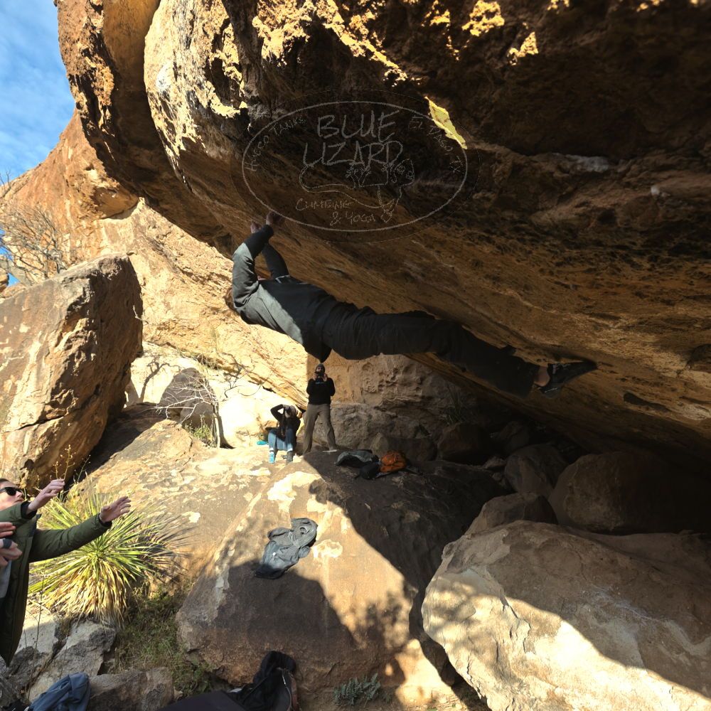 Blue Lizard Climbing and Yoga Hueco Tanks guiding on December 16, 2022, with Emma, Ethan, Isaac, Keith, and Nathan