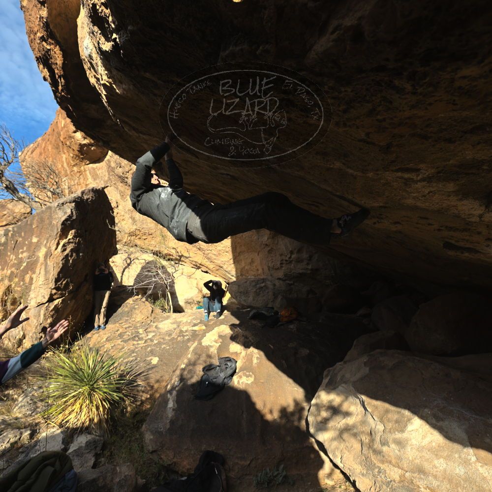 Blue Lizard Climbing and Yoga Hueco Tanks guiding on December 16, 2022, with Emma, Ethan, Isaac, Keith, and Nathan