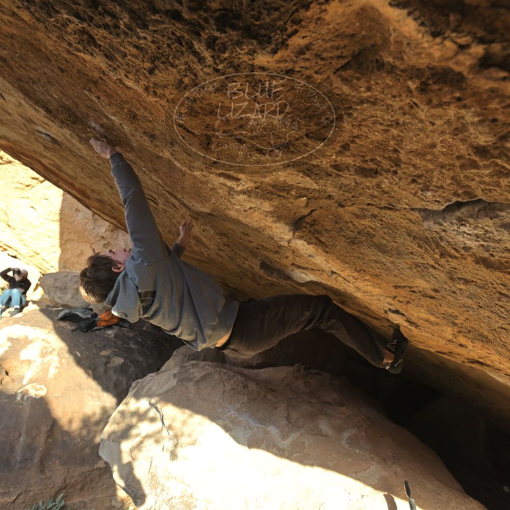 Blue Lizard Climbing and Yoga Hueco Tanks guiding on December 16, 2022, with Emma, Ethan, Isaac, Keith, and Nathan