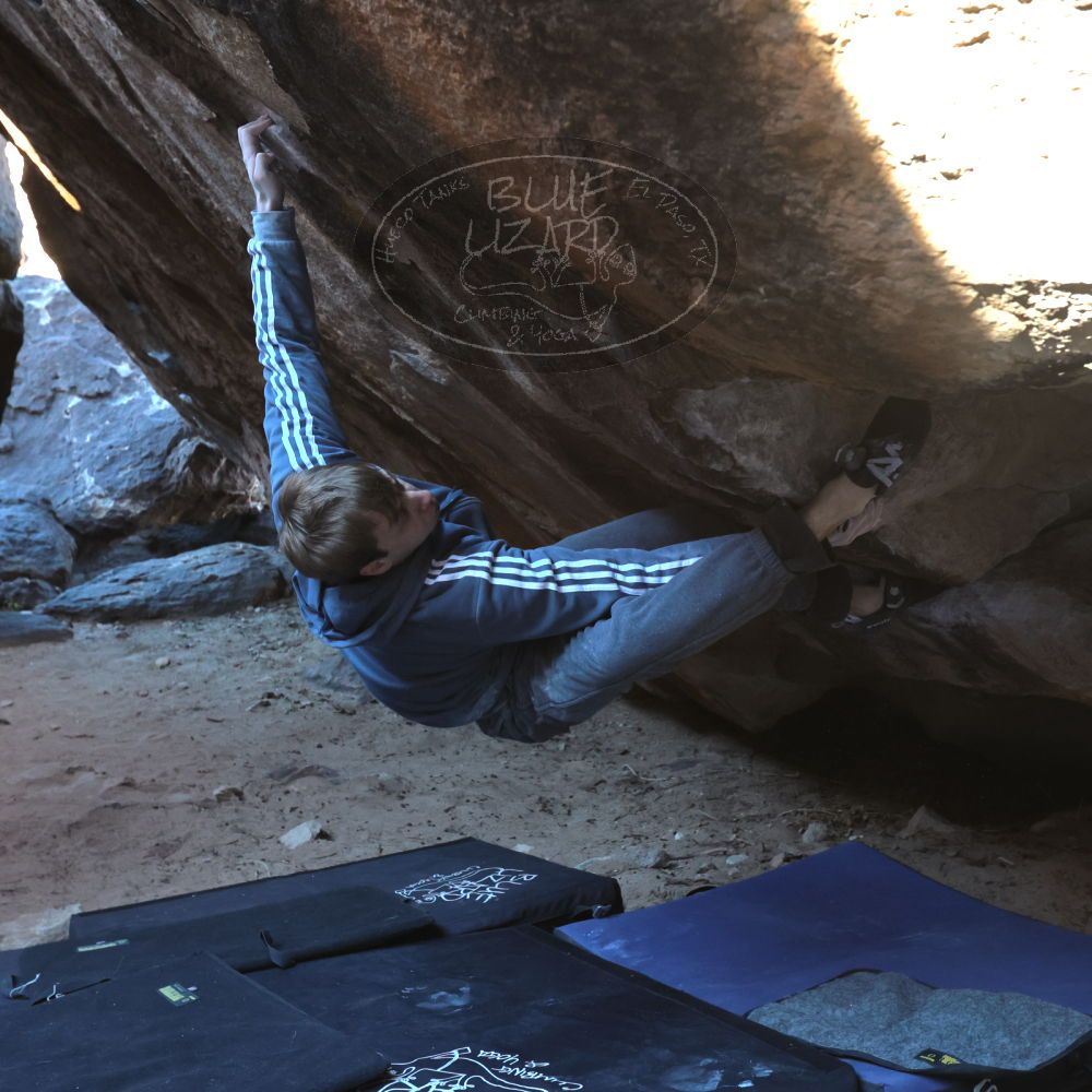 Blue Lizard Climbing and Yoga Hueco Tanks guiding on December 17, 2022, with Emma, Ethan, Isaac, Keith, and Nathan