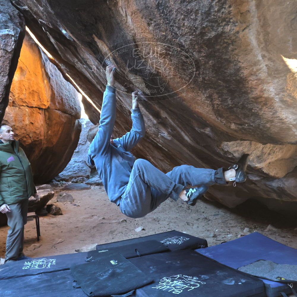 Blue Lizard Climbing and Yoga Hueco Tanks guiding on December 17, 2022, with Emma, Ethan, Isaac, Keith, and Nathan