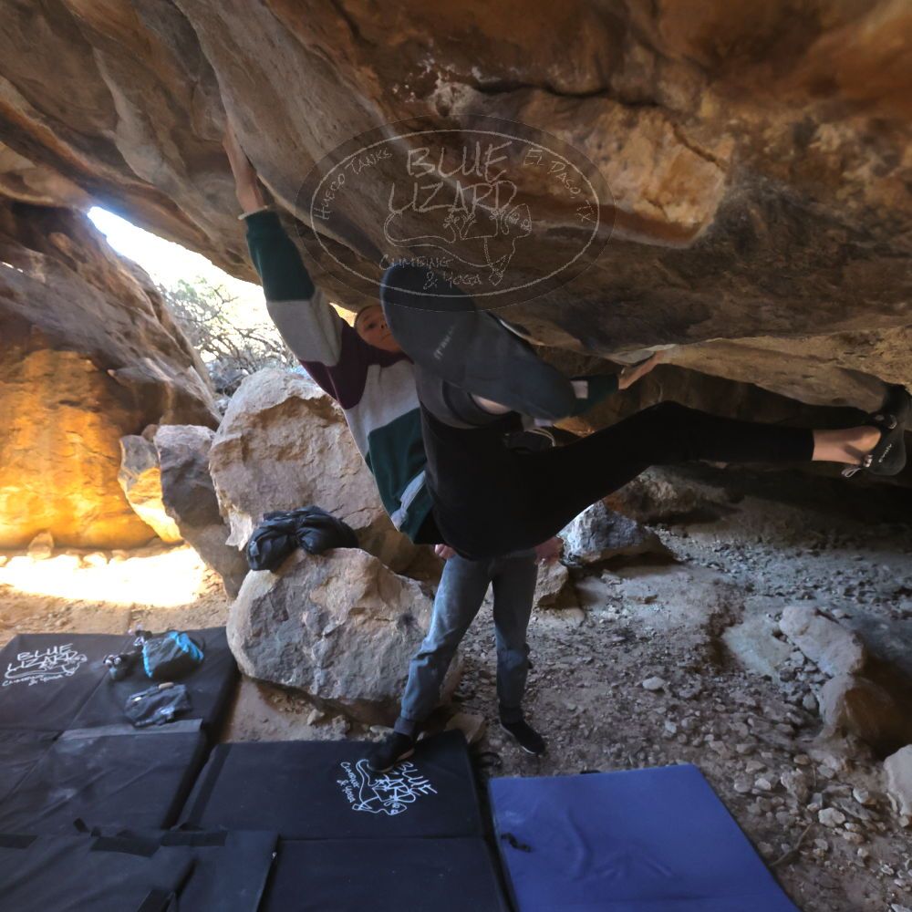 Blue Lizard Climbing and Yoga Hueco Tanks guiding on December 17, 2022, with Emma, Ethan, Isaac, Keith, and Nathan