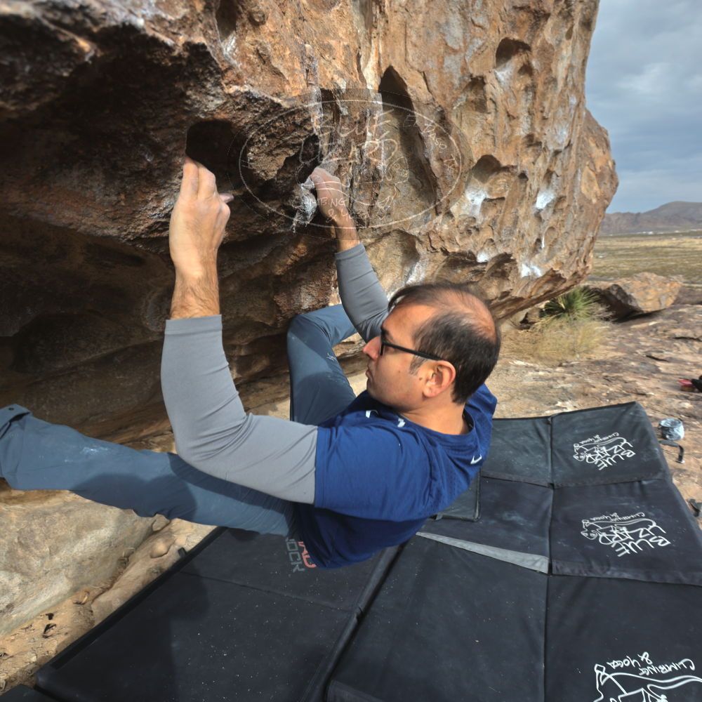 Blue Lizard Climbing and Yoga Hueco Tanks guiding on December 18, 2022, with Holden, Joe, Neal, and Trent