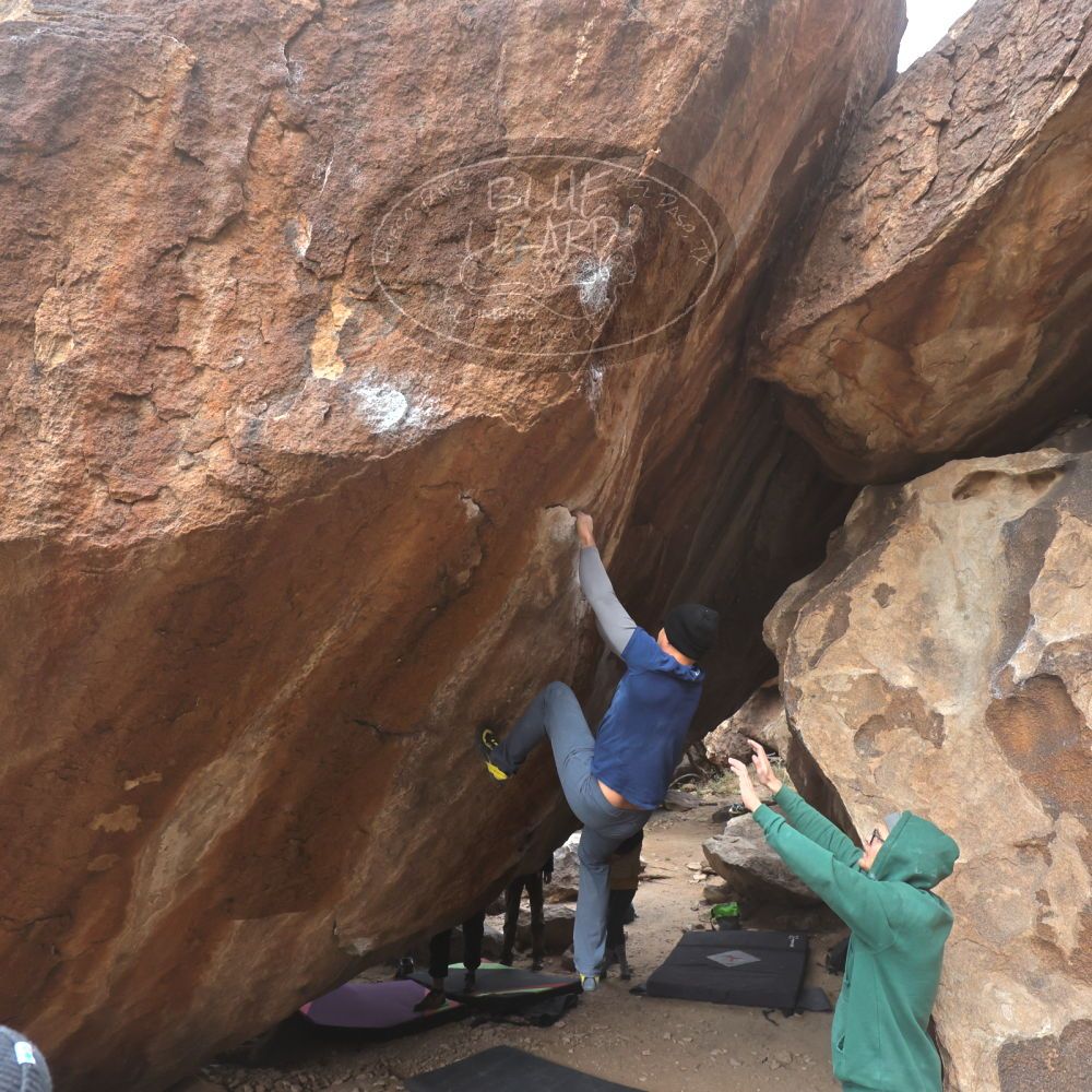 Blue Lizard Climbing and Yoga Hueco Tanks guiding on December 18, 2022, with Holden, Joe, Neal, and Trent