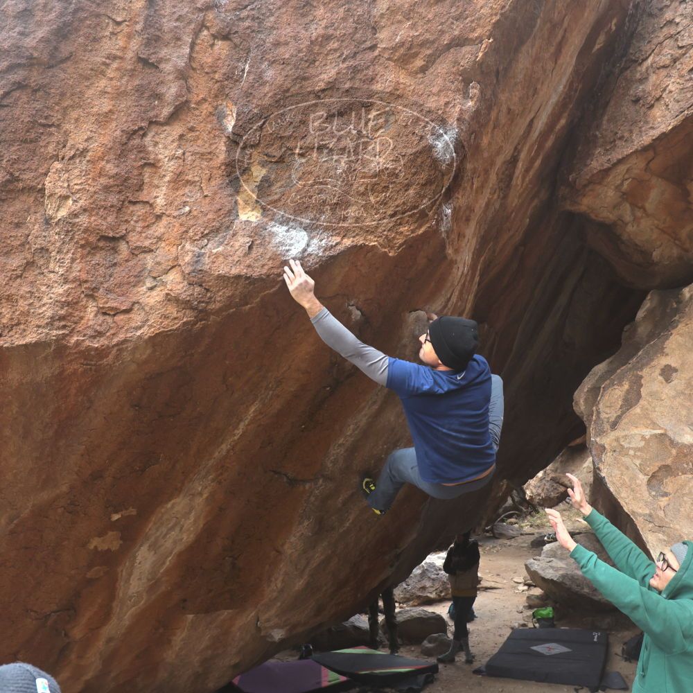Blue Lizard Climbing and Yoga Hueco Tanks guiding on December 18, 2022, with Holden, Joe, Neal, and Trent
