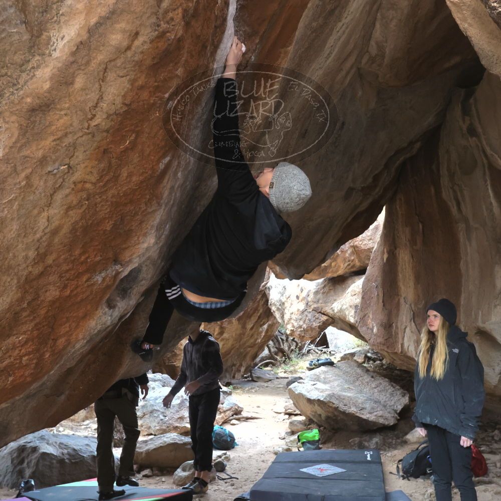 Blue Lizard Climbing and Yoga Hueco Tanks guiding on December 18, 2022, with Holden, Joe, Neal, and Trent