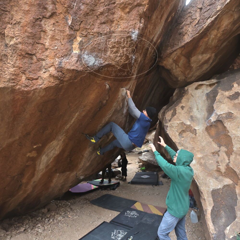 Blue Lizard Climbing and Yoga Hueco Tanks guiding on December 18, 2022, with Holden, Joe, Neal, and Trent