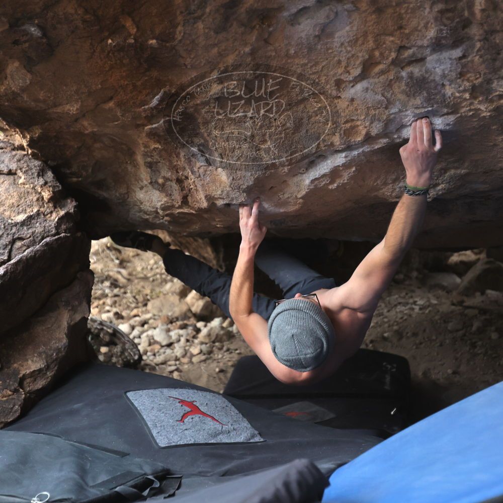 Blue Lizard Climbing and Yoga Hueco Tanks guiding on December 18, 2022, with Holden, Joe, Neal, and Trent