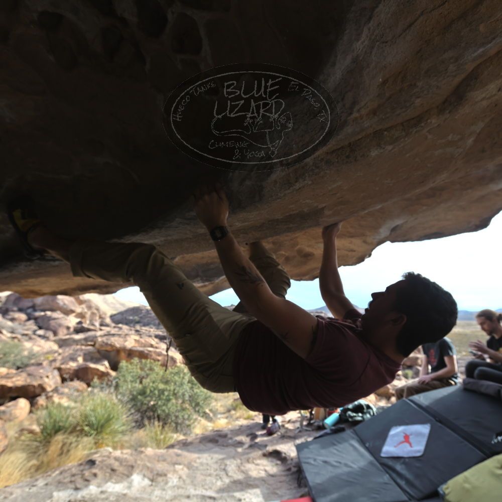 Blue Lizard Climbing and Yoga Hueco Tanks guiding on January 7, 2023, with Andrew, James, Jared, Jonah & Griffin, Sam, and Ty |