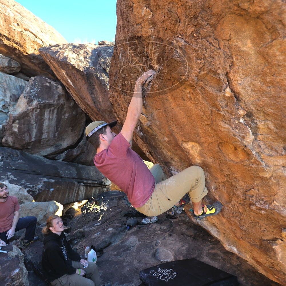 Blue Lizard Climbing and Yoga Hueco Tanks guiding on January 7, 2023, with Andrew, James, Jared, Jonah & Griffin, Sam, and Ty |