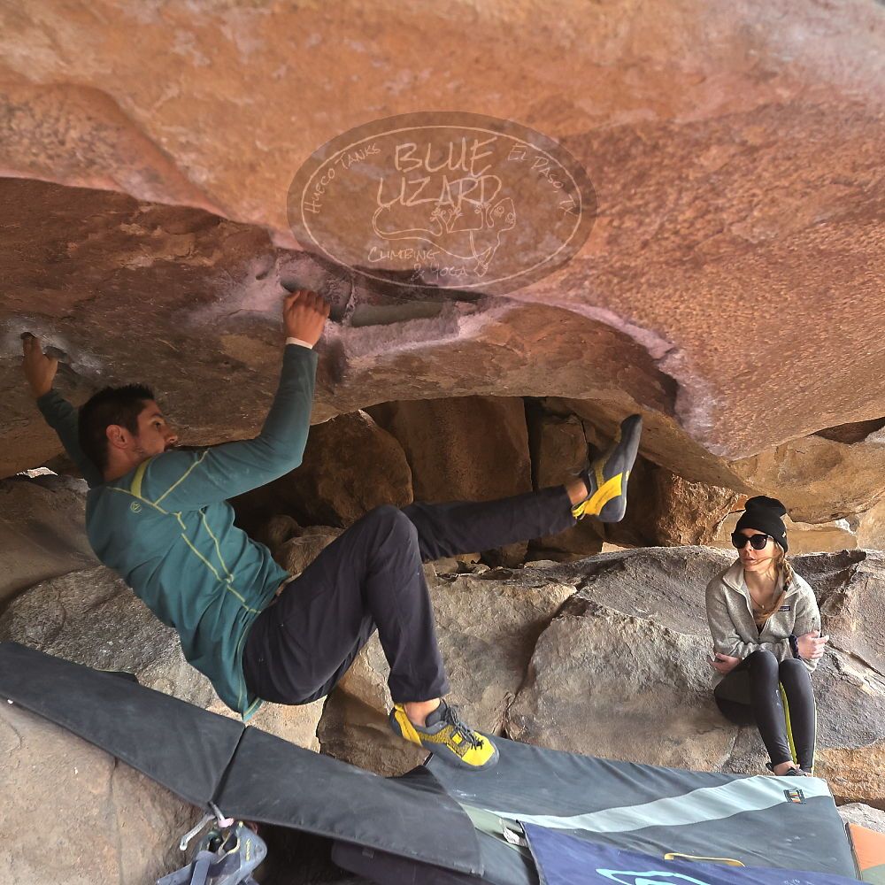 Blue Lizard Climbing and Yoga Hueco Tanks guiding on January 15, 2023, with Anthony, Fern, Ginger, Greg, Joanie, and Sophie & Kieran |